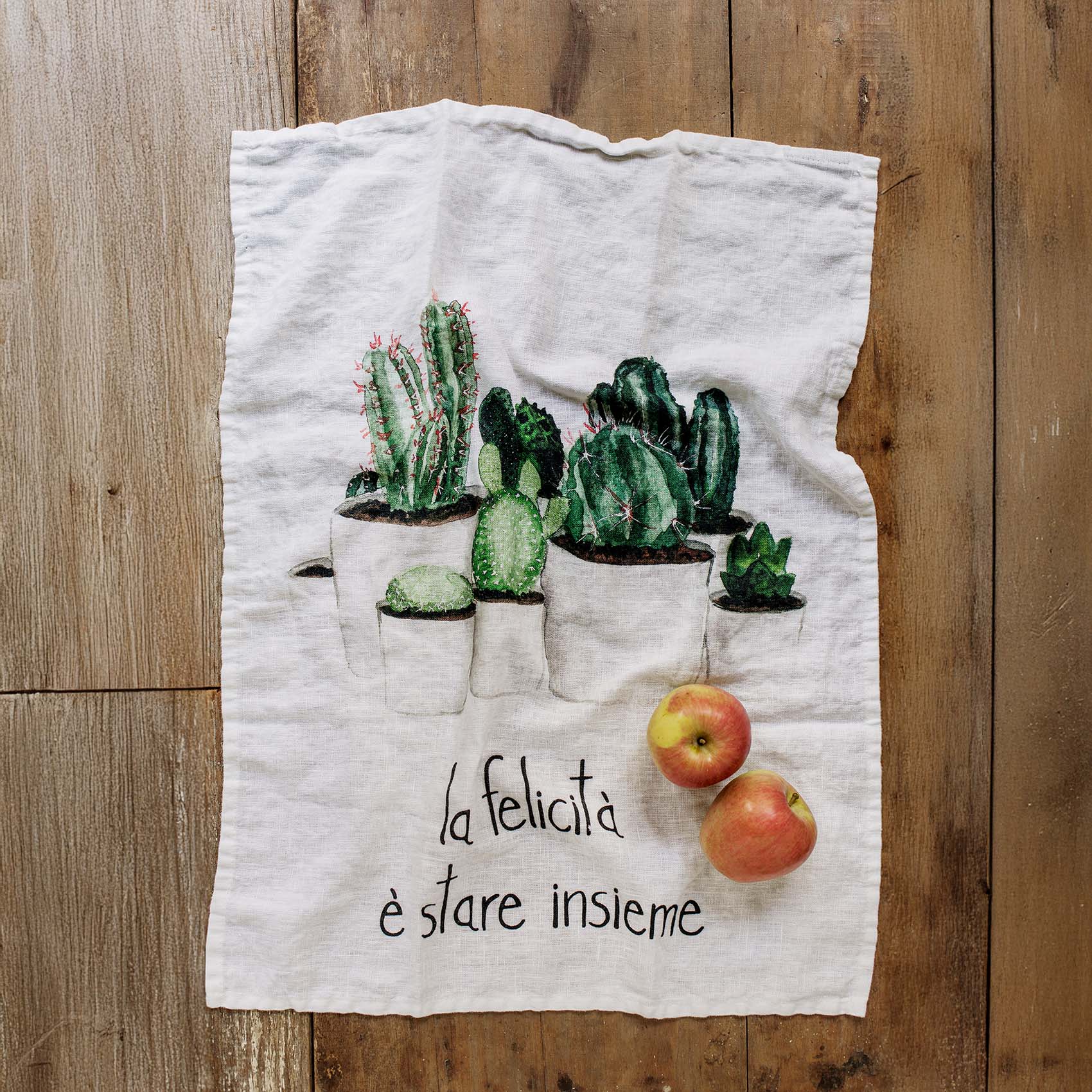 Abbiamo scelto il lino per realizzare i nostri canovacci sia per le ottime qualità di assorbimento del materiale che per la tipica trama del tessuto che valorizza i nostri disegni ad acquerello. Dopo la stampa il tessuto subisce il trattamento stonewash, che conferisce al tessuto l'effetto stropicciato e ne esalta la morbidezza.