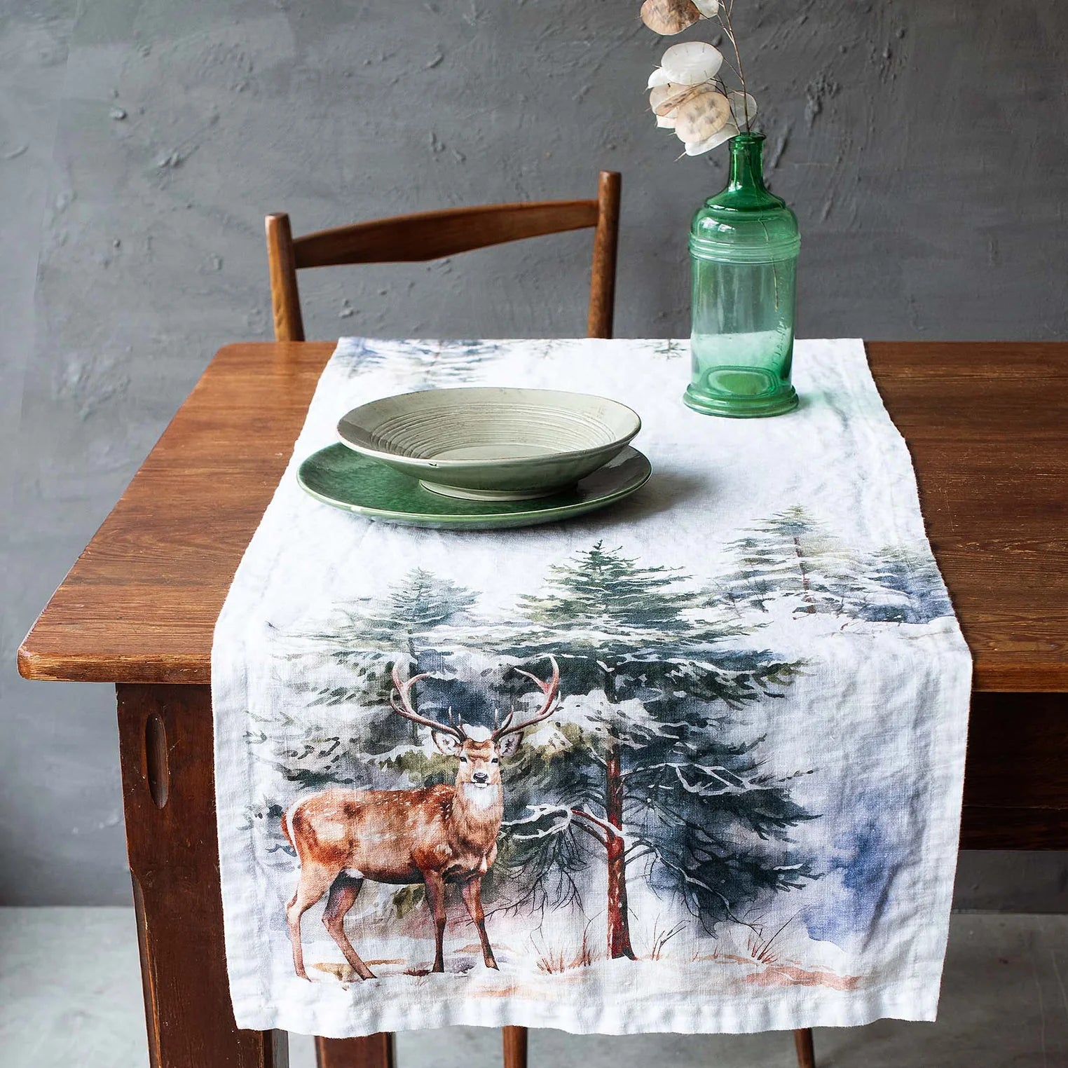 Abbiamo scelto il lino per realizzare i nostri runner sia per le ottime qualità del materiale che per la tipica trama del tessuto che valorizza i nostri disegni ad acquerello. Dopo la stampa il tessuto subisce il trattamento stonewash, che conferisce al tessuto l'effetto stropicciato e ne esalta la morbidezza.